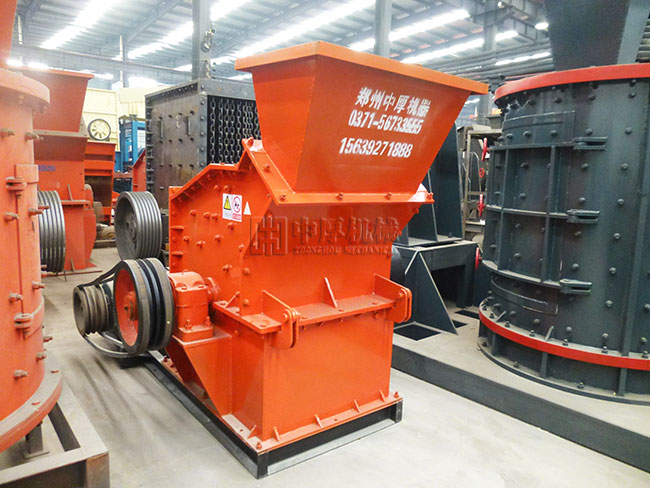 細碎機工作時,細碎機在電機的帶動下,轉子高速旋轉,物料進入一破碎腔破碎與轉子上的板錘撞擊破碎,然后進入二細碎腔進行粉碎。在破碎過程中,不但形成了物料與板錘及襯板之間的撞擊破碎,同時也完成了各個板錘間以及破碎腔內進行的石打石整形,成品然后從出料口篦條處排出。
